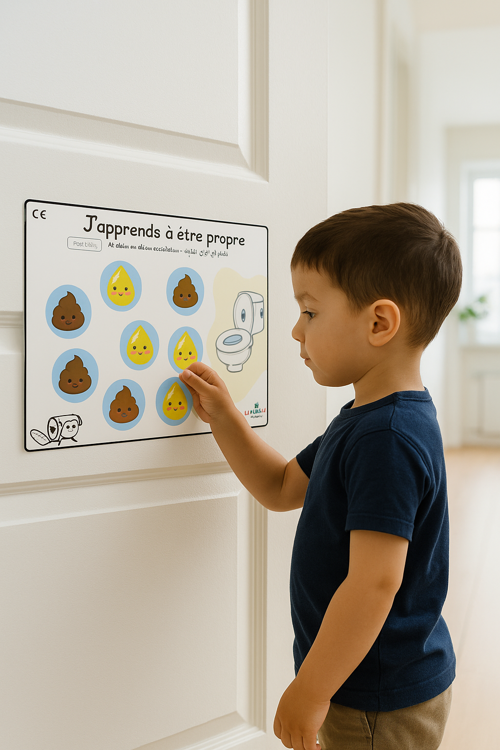 - Système de récompense immédiat 🏆 : Après chaque passage réussi aux toilettes, l'enfant colle fièrement son élément sur le support
